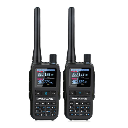 Compact Dual PTT Walkie Talkie Set with Air Band Reception