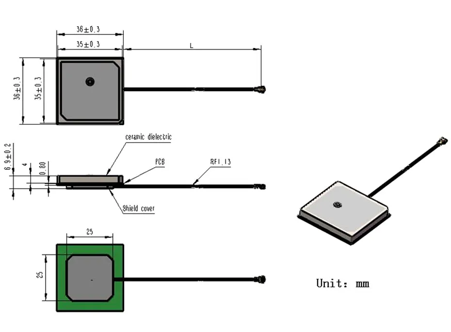 High Gain GNSS GPS Patch Antenna with IPX Connector