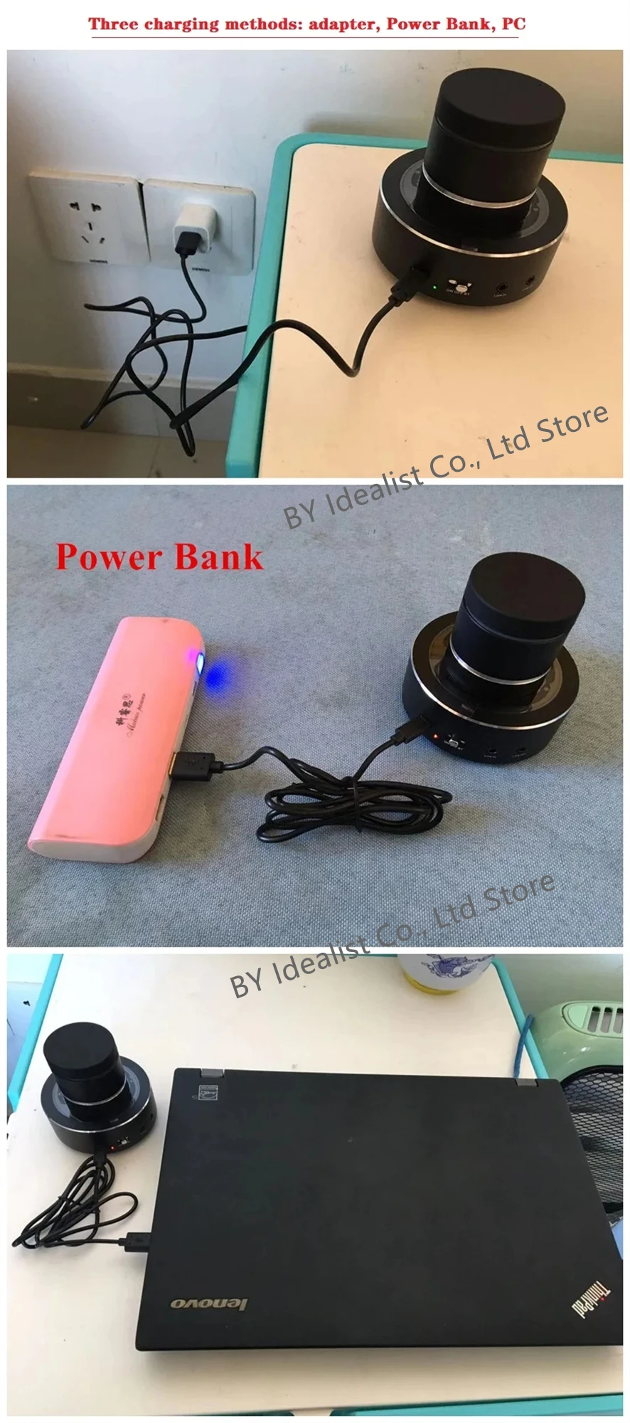 Three Charging Methods: Adapter, Power Band, PC & Computer