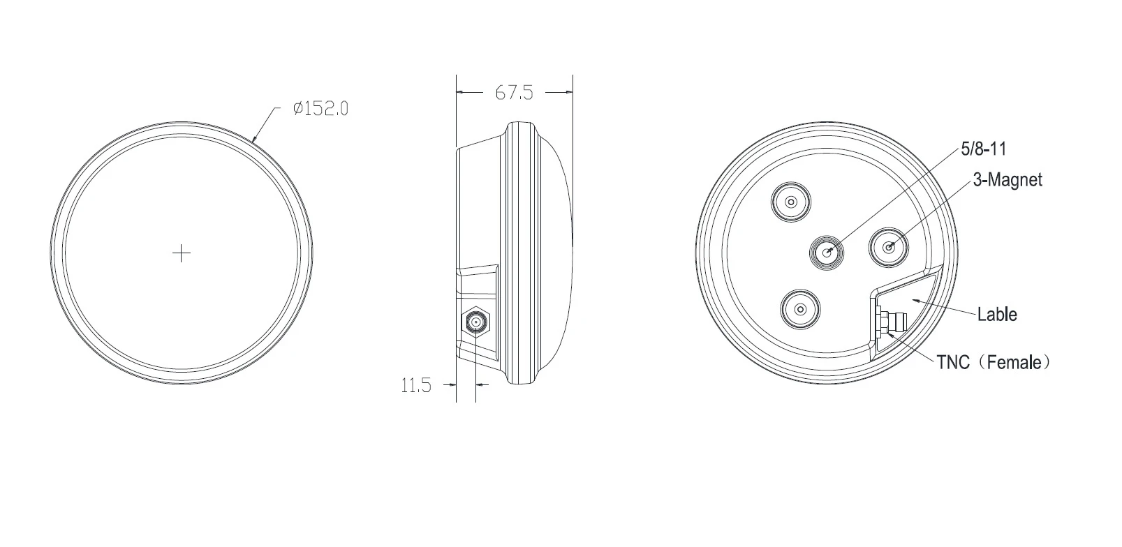 AG-30 is a multi-satellite multi-frequency GNSS measurement antenna that supports Beidou II, GPS and GLONASS L1/L2 frequency band satellite navigation signal reception. It can be widely used in high-precision navigation and positioning occasions such as geodetic surveying and mapping, oceanographic surveying, precision agriculture, and deformation monitoring. The bottom of the product is equipped with 3 magnets and a standard 5/8-11 large nut for easy installation.