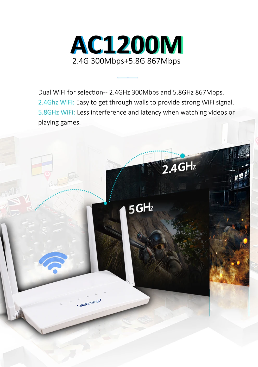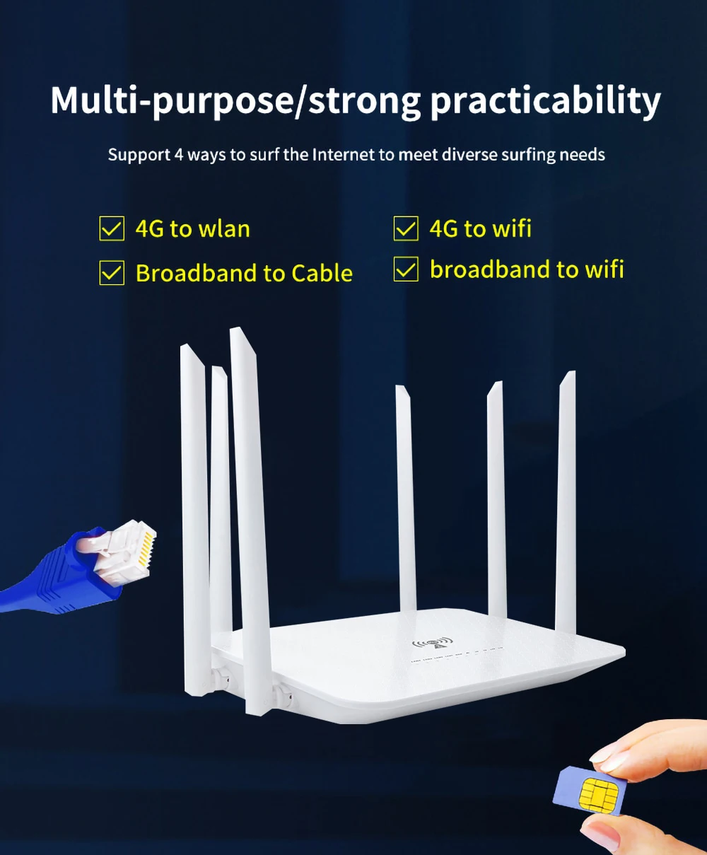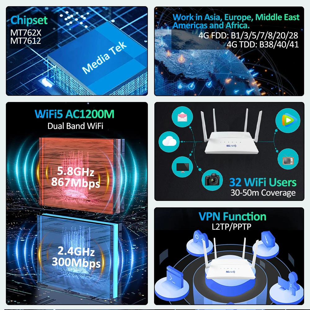 AC1200 Dual Band 4G LTE Router 2.4G 5.8G WAN LAN VPN Modem