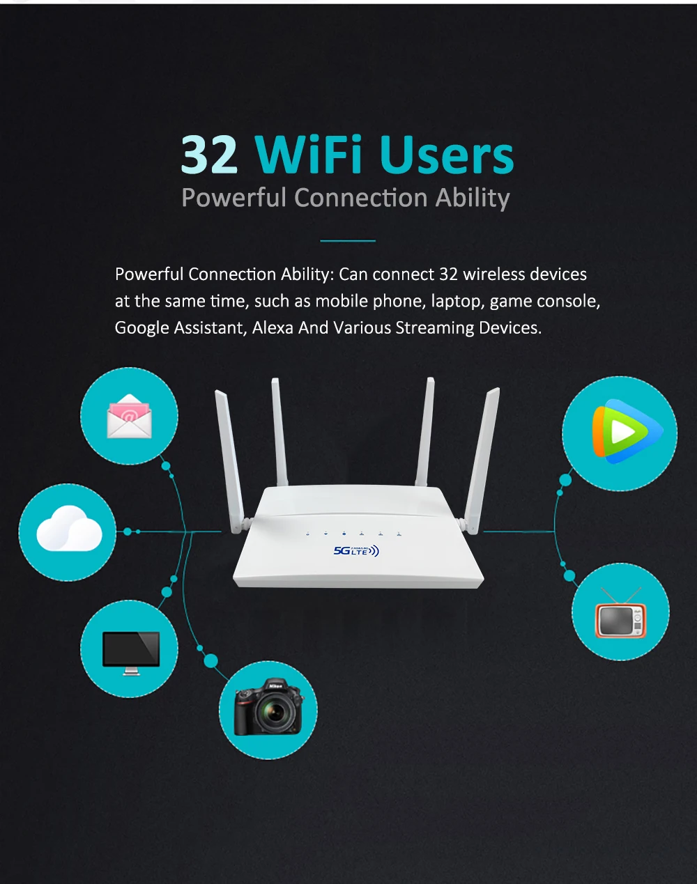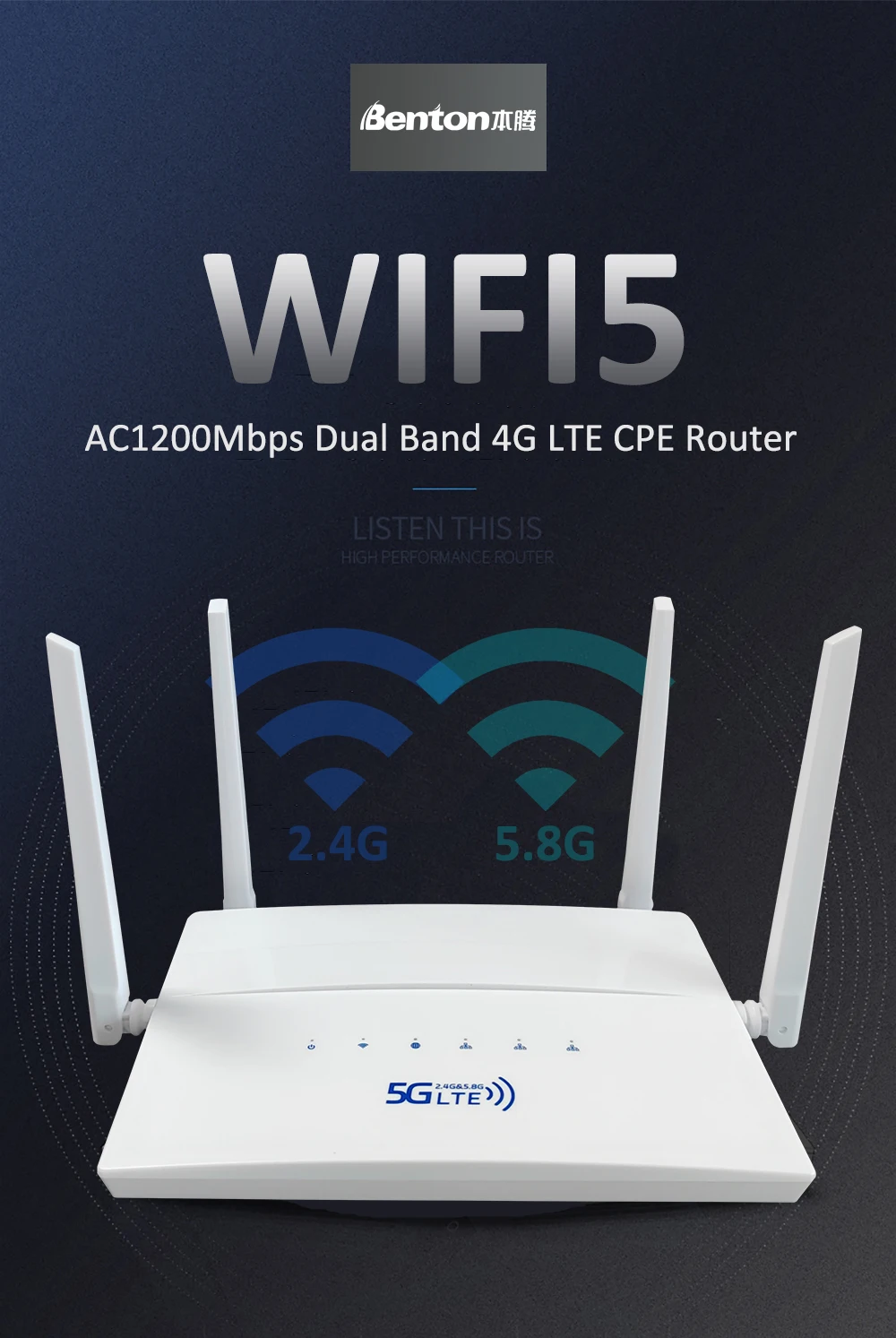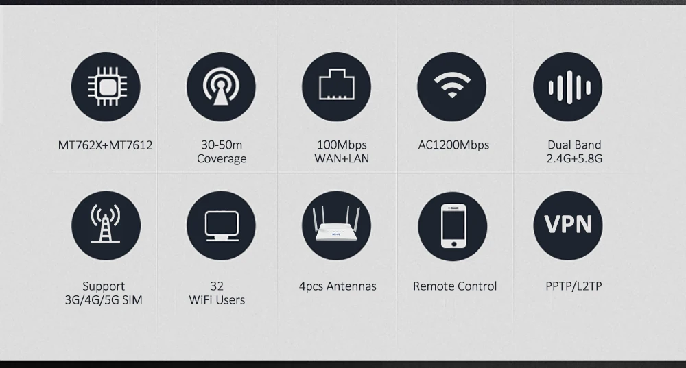 AC1200 Dual Band 4G LTE Router 2.4G 5.8G WAN LAN VPN Modem