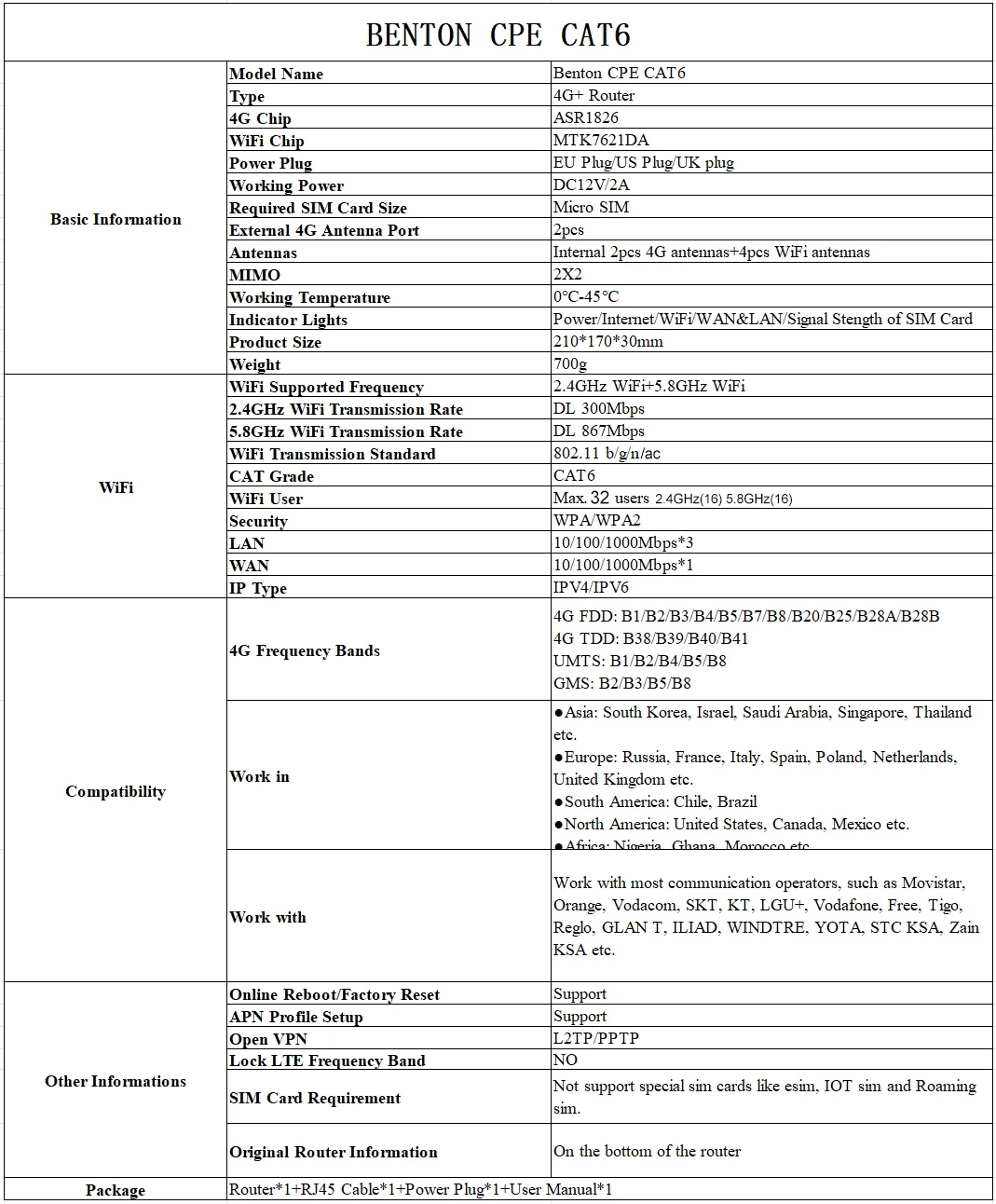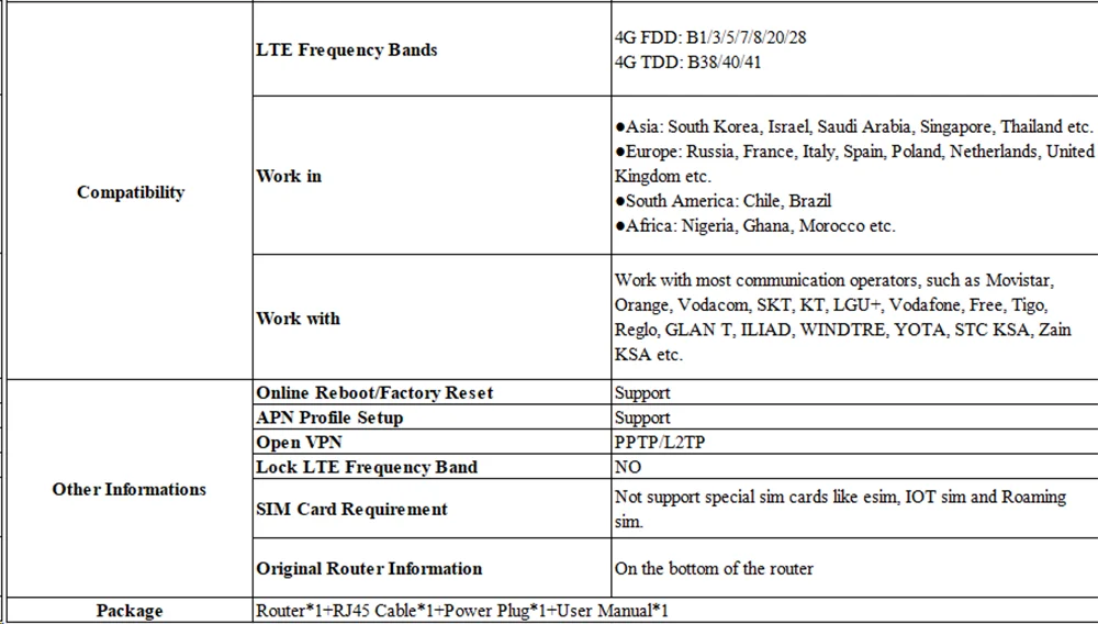 FDD: B1/B2/B3/B4/B5/B7/B8/B20/B25/B28A/B28B