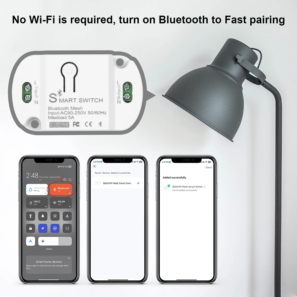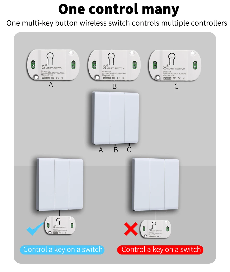 2.The receiver uses Bluetooth protocol and can be directly controlled locally using the Smart Life/Tuya App (the phone needs to have Bluetooth enabled). You can also connect the receiver to the Tuya Bluetooth hub for remote control.