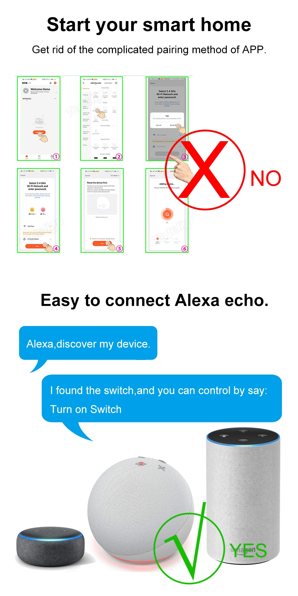 5. Control method: device button/mobile App/2.4G free panel switch/smart speaker