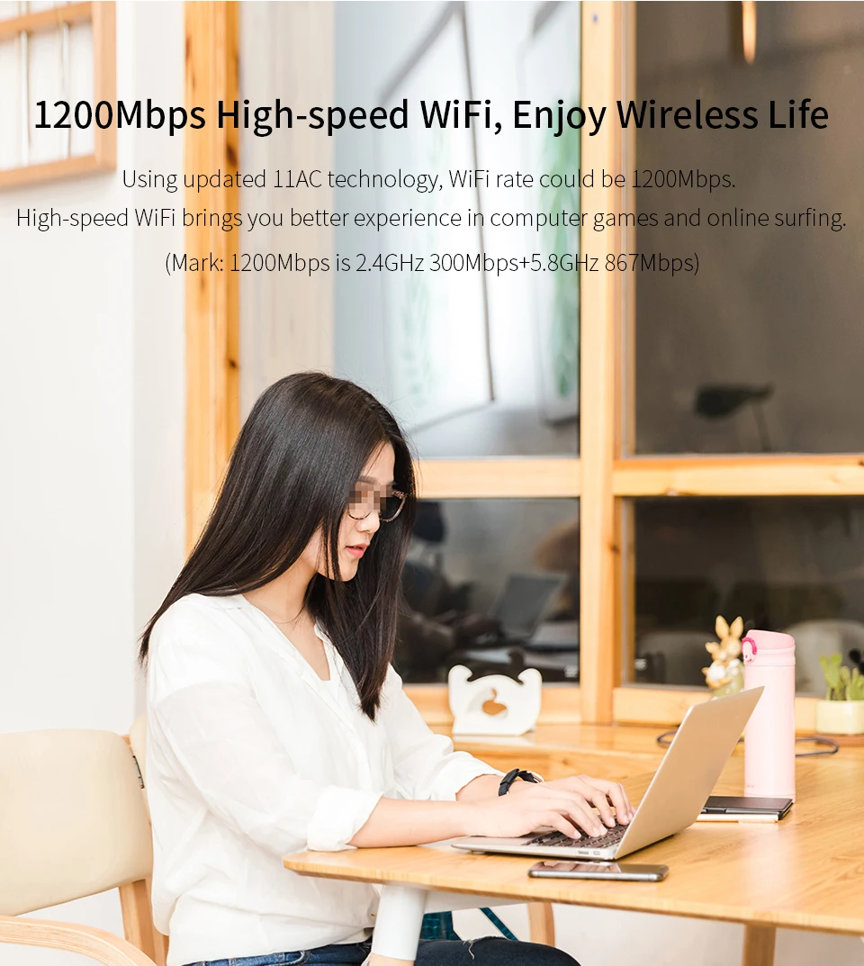 • 1200Mbps wireless transmission rate;