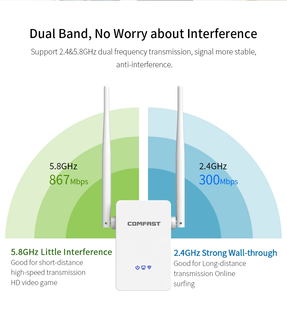 • 2.4/5.8GHz wireless frequency;