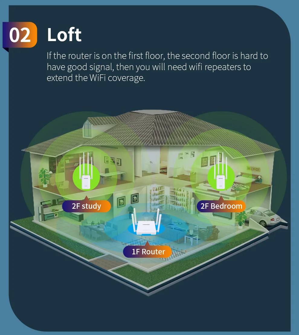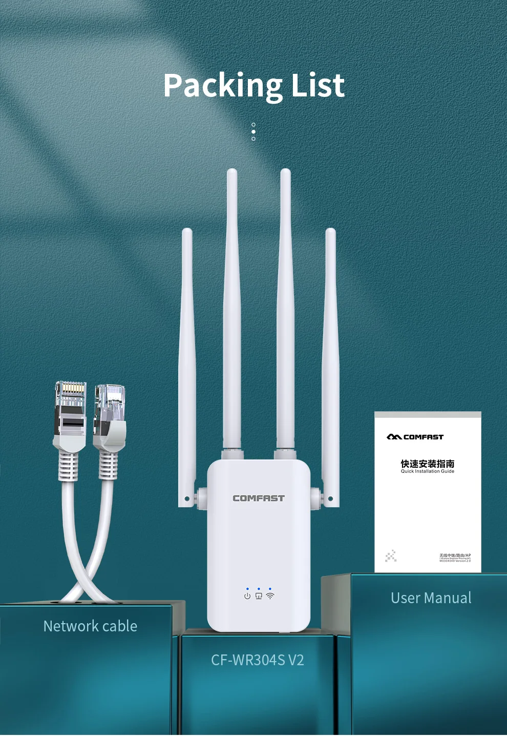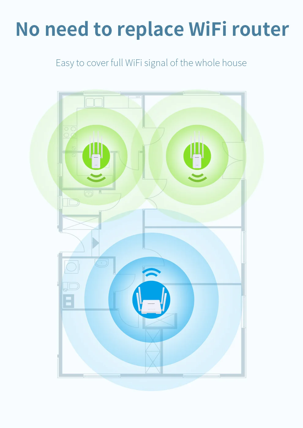 300Mbps WiFi Repeater with High Gain Antennas Long Range Extender Booster