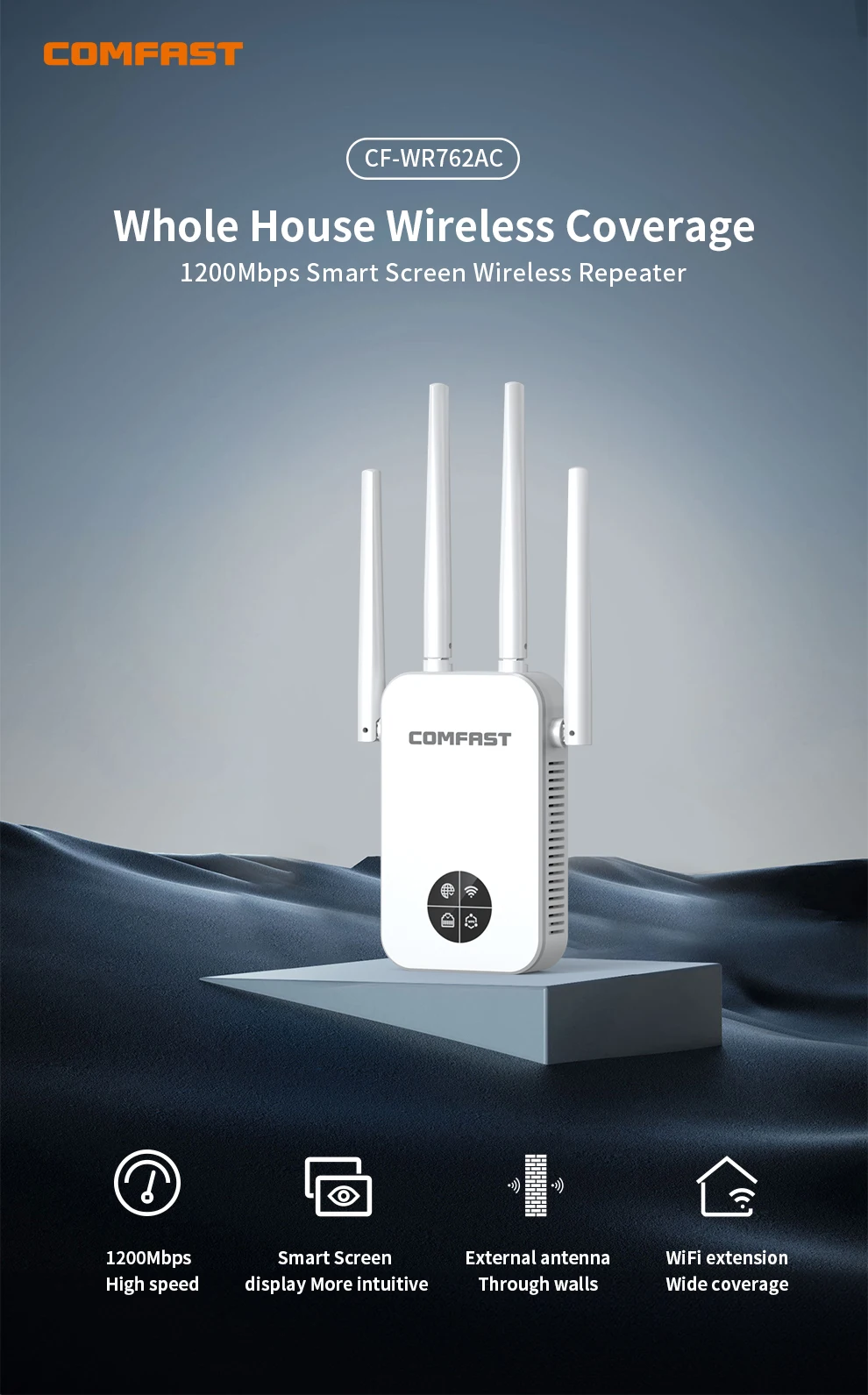 Whole House Wireless Coverage 1200Mbps OLED Wireless Repeater