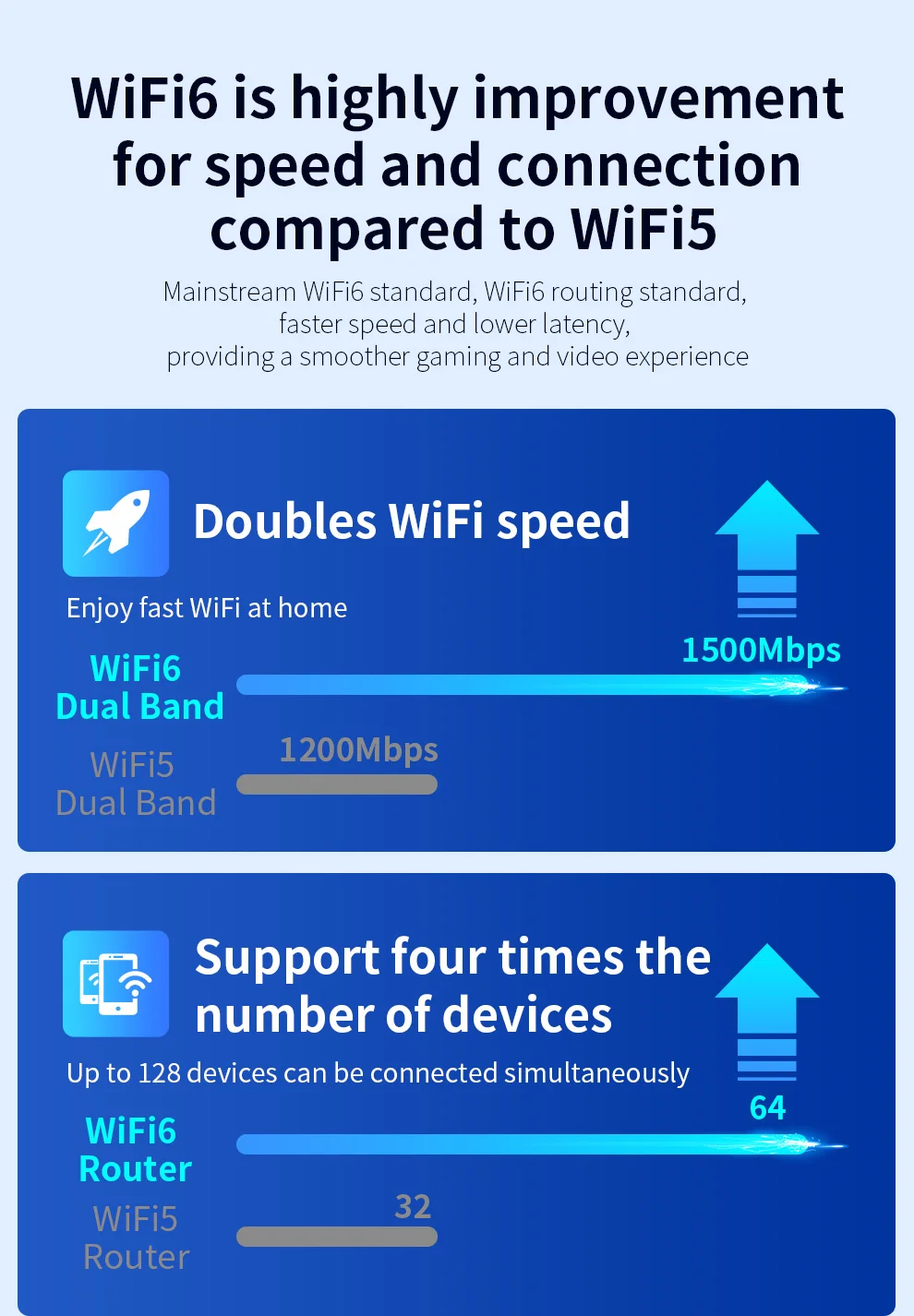 WiFi6 is highly improvement for speed and connection compared to WiF5