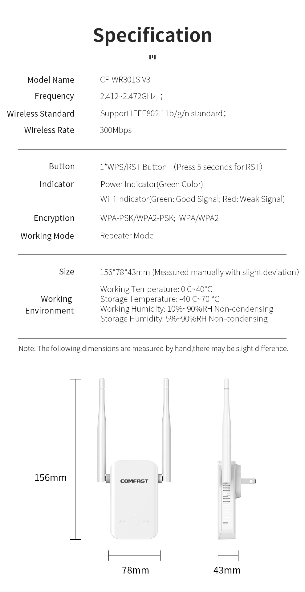 N300 Wireless WiFi Repeater 2.4GHz Signal Amplifier with Antennas