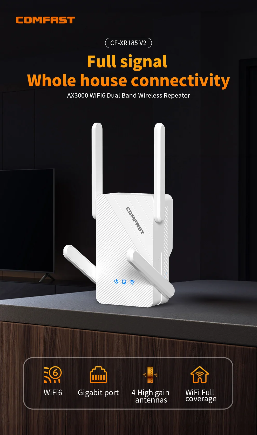 Full signal Whole house connectivityAX3000 Dual-band Gigabit WiFi6 dual-band signal amplifier