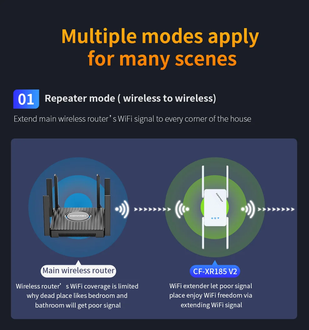 Expand WiFi signal, effectively solve the problem of weak signal, and clear WiFi dead spots