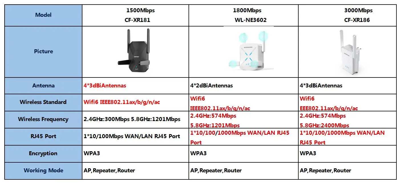 WiFi6 AX1500 AX3000 Repeater Gigabit Long Range WiFi Extender