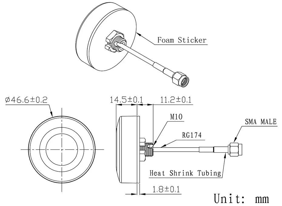 Low Profile GNSS GPS Car Antenna with SMA Connector