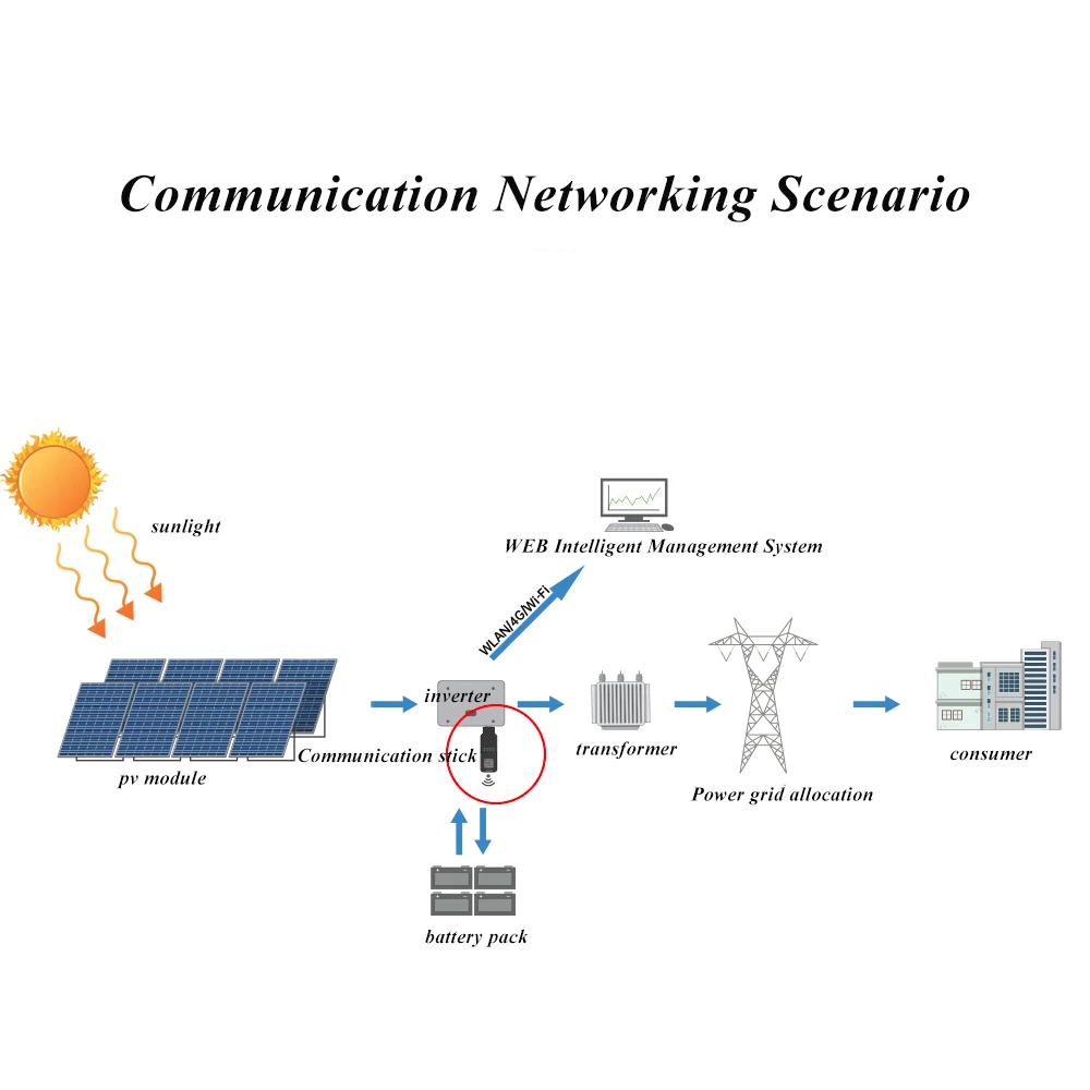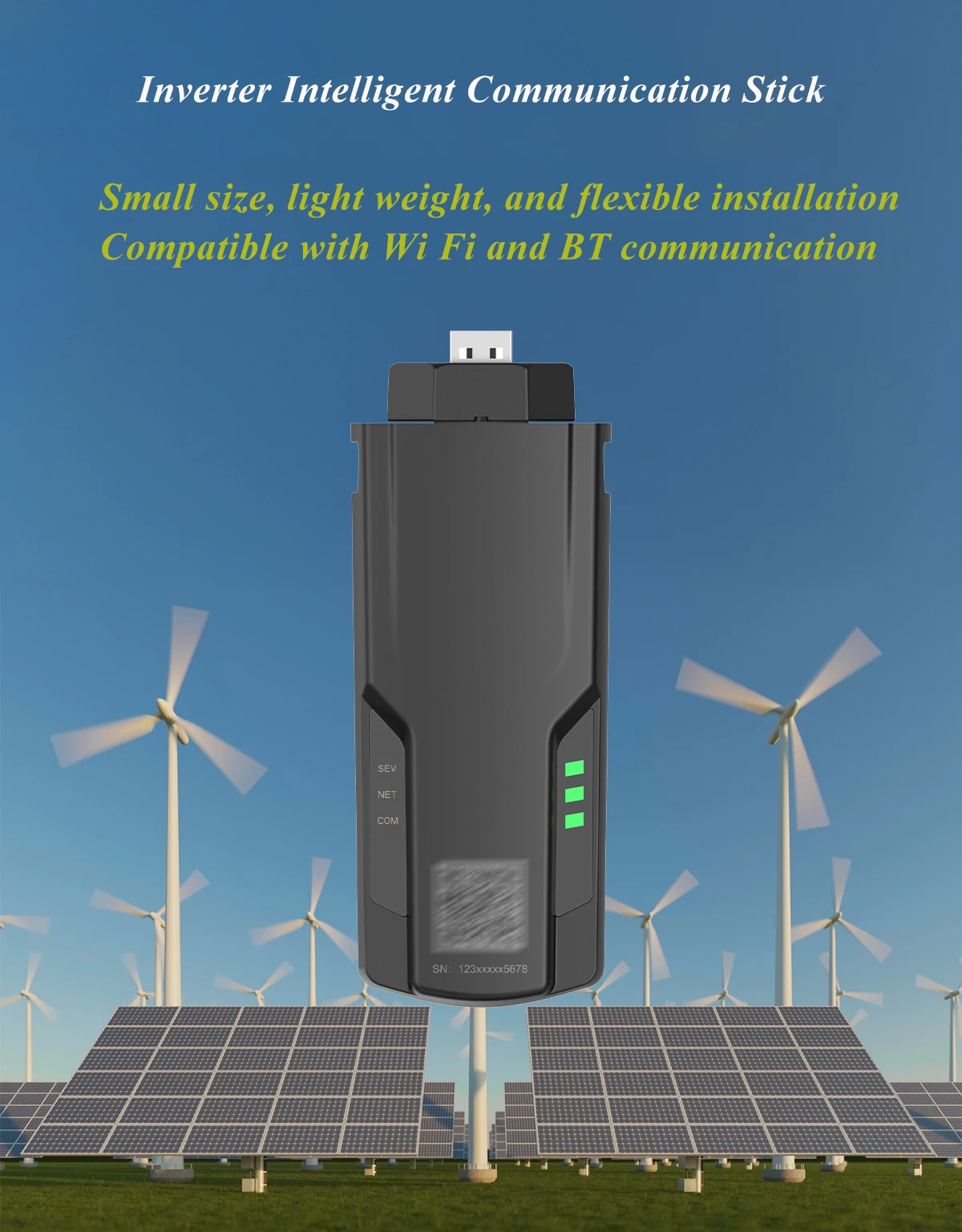 The intelligent communication stick supports Wi Fi/BT/4G network * connection, plug and play, and easily completes data communication between the inverter and the photovoltaic management system.
