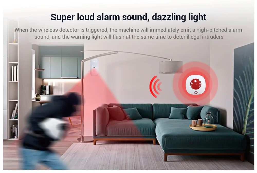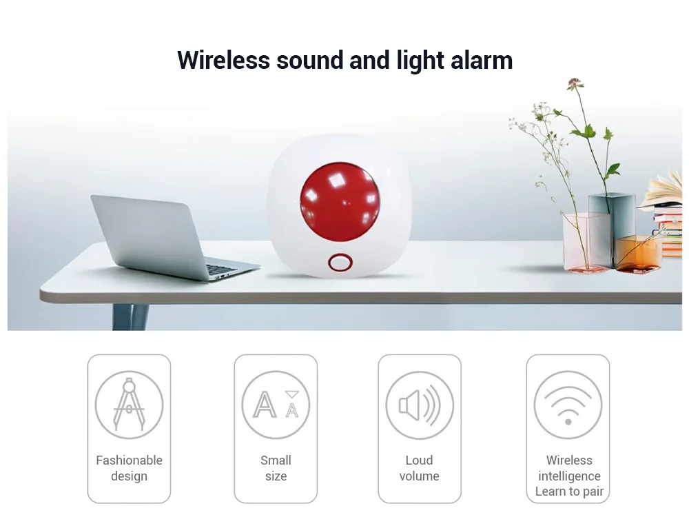 Wireless Loud Siren Strobe Red Light Indoor Alarm Horn