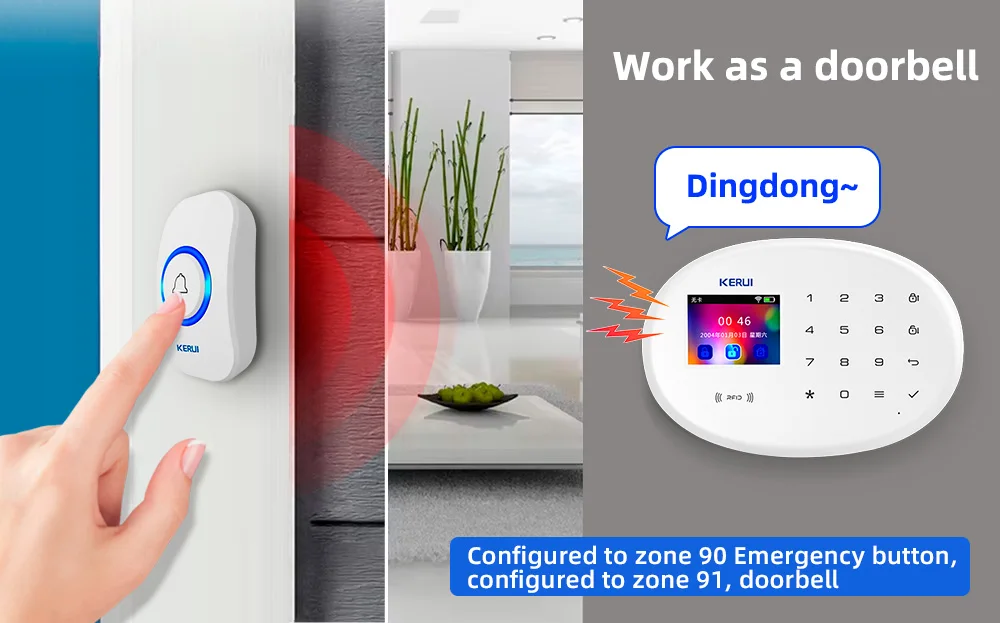 Compatible with wireless PIR sensor, door sensor, smoke detector, gas detector, panic button etc. It has been widely used in home, factory, school, shop, villa and residential area to provide protection for valuable assets