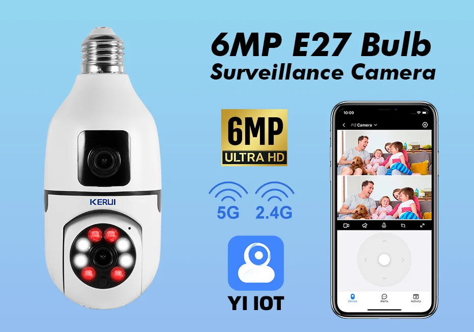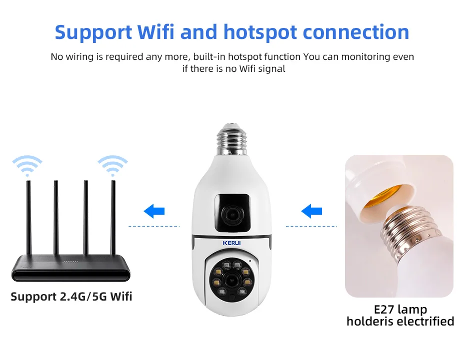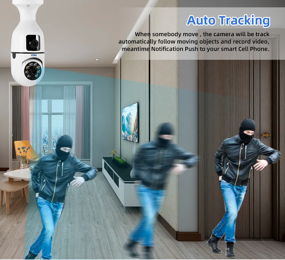 WiFi Dual Lens Bulb Camera Auto Tracking Full Color Night Vision