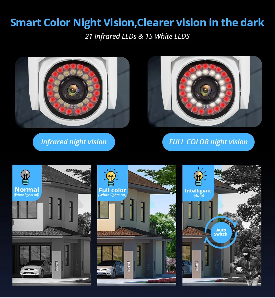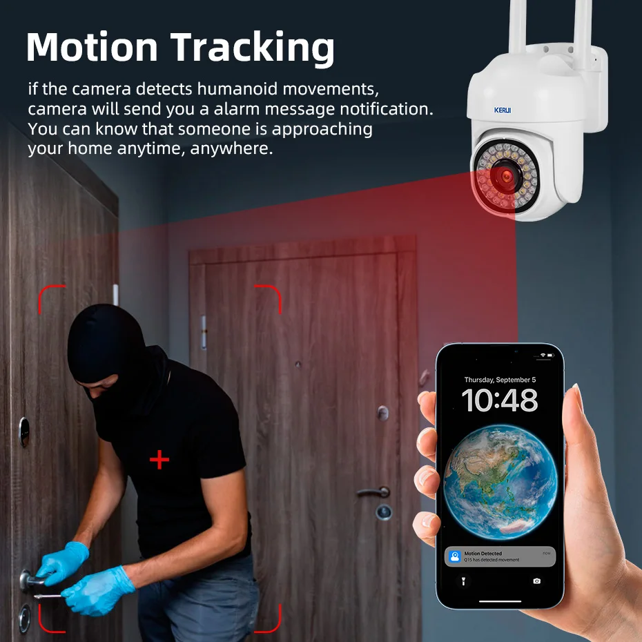 Outdoor PTZ WiFi Camera Auto Tracking AI Detection Color Night Vision