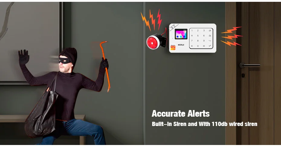 If thieves invade, W181 WIFI alarm system will issue a 110dB alert ,warn neighbors and deters potential intruders