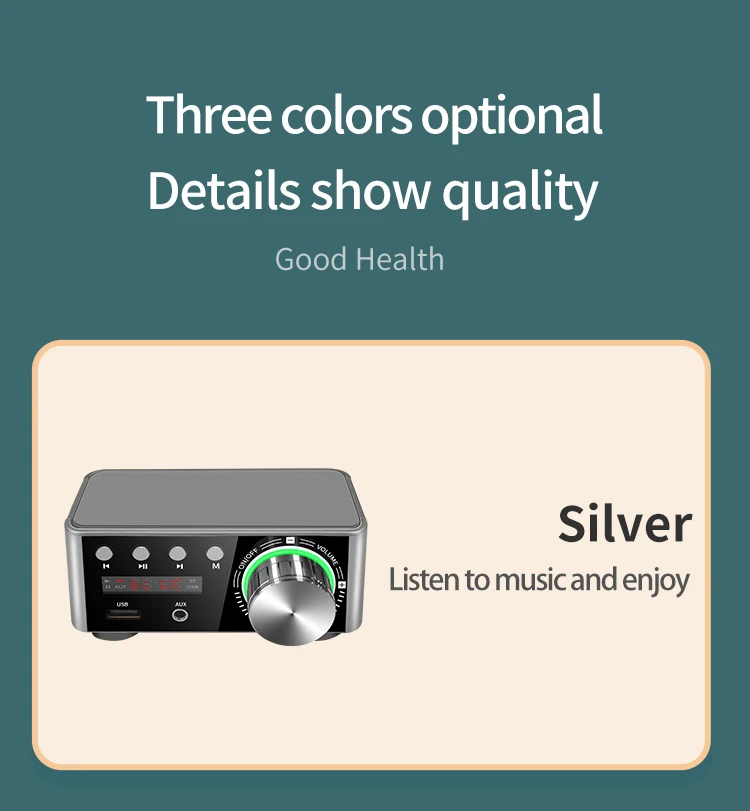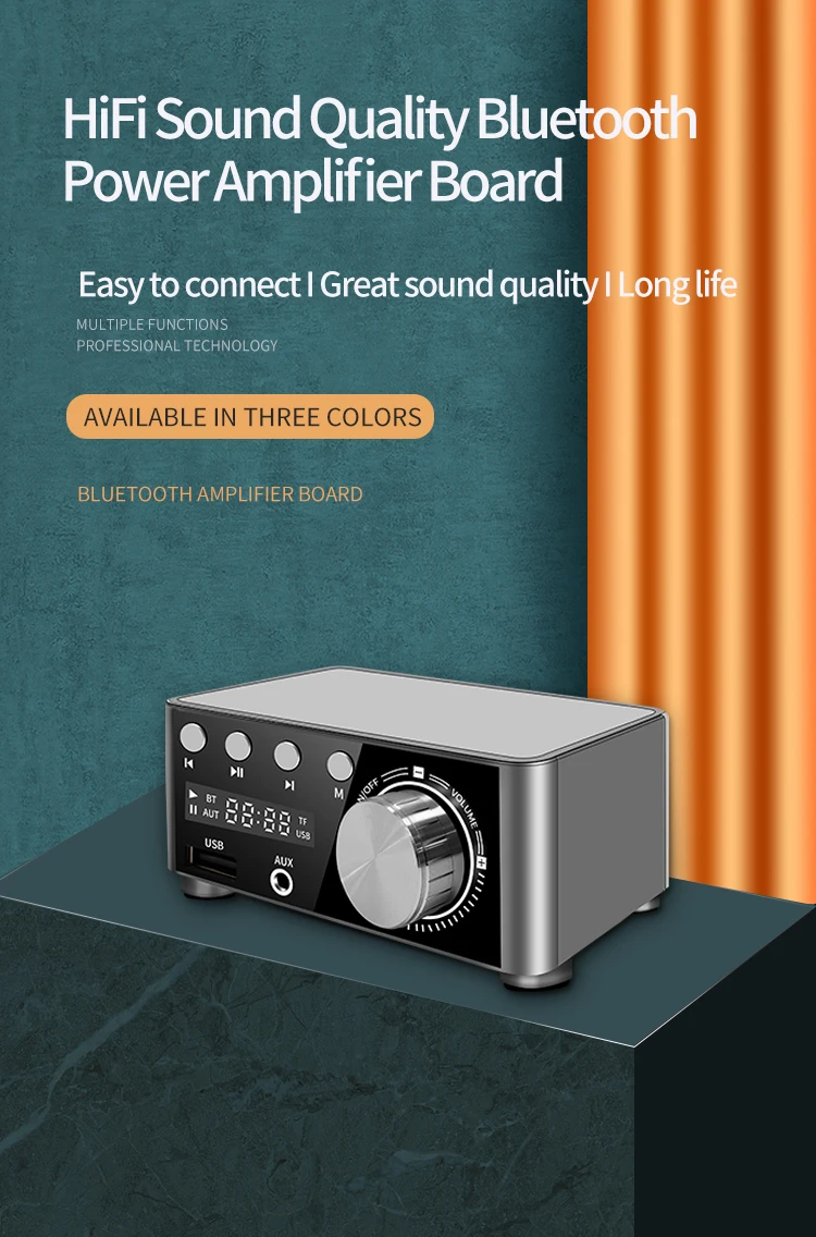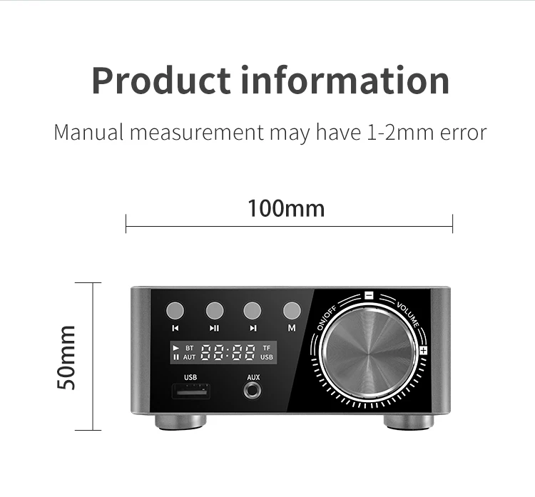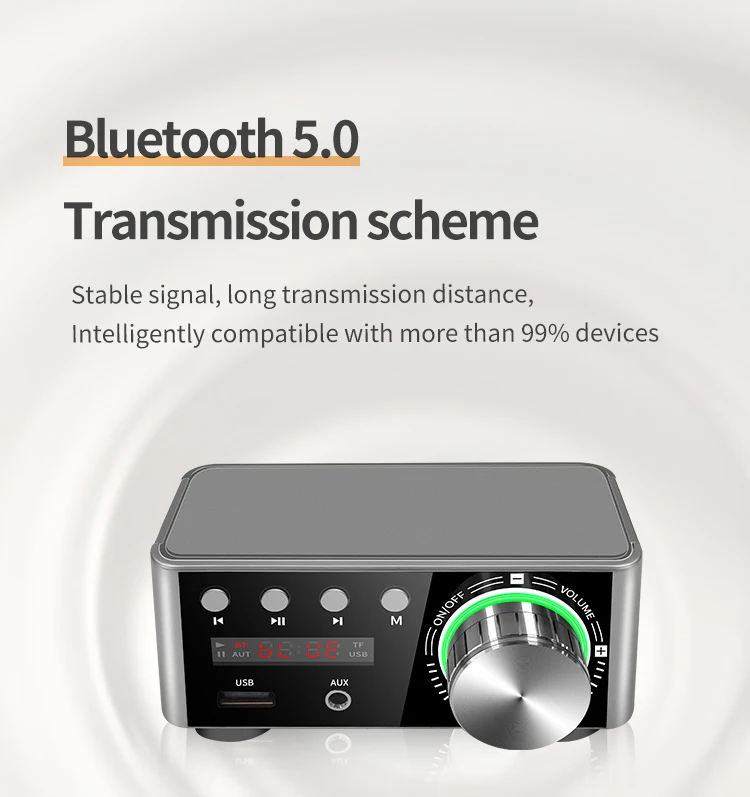 1.Compact design and exquisite appearance with LED display and power / mode switch, Idea for home and desktop audio system use.