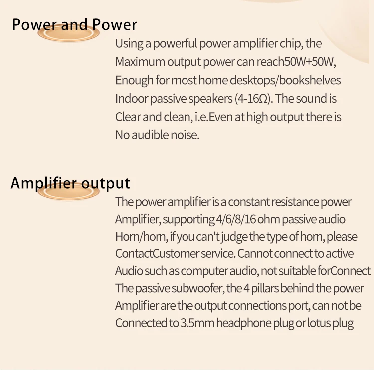 2.Adopting TPA3116 chipset, max output power can reach 50W*2, enough for most home desktop/bookshelf/indoor passive speakers(4-16Ω). The sound is clear and clean without any audible noise even at high output.
