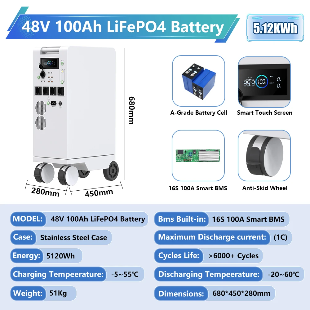 48V 100Ah 5Kwh LiFePO4 + 6000W MPPT
