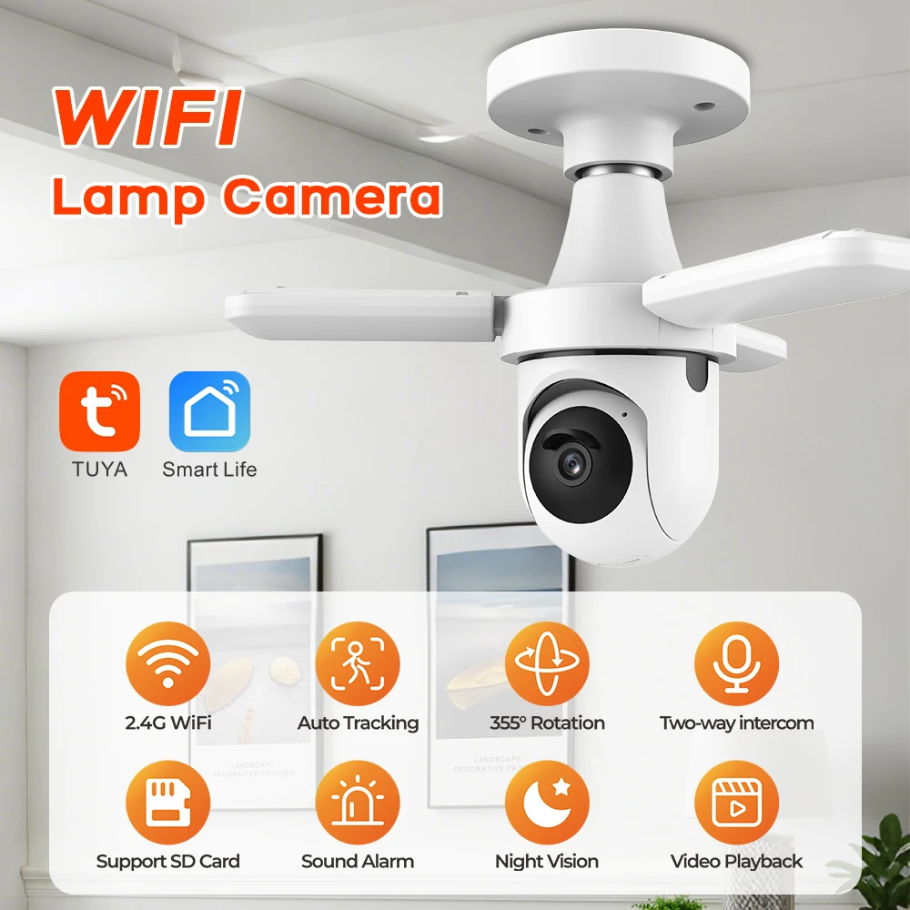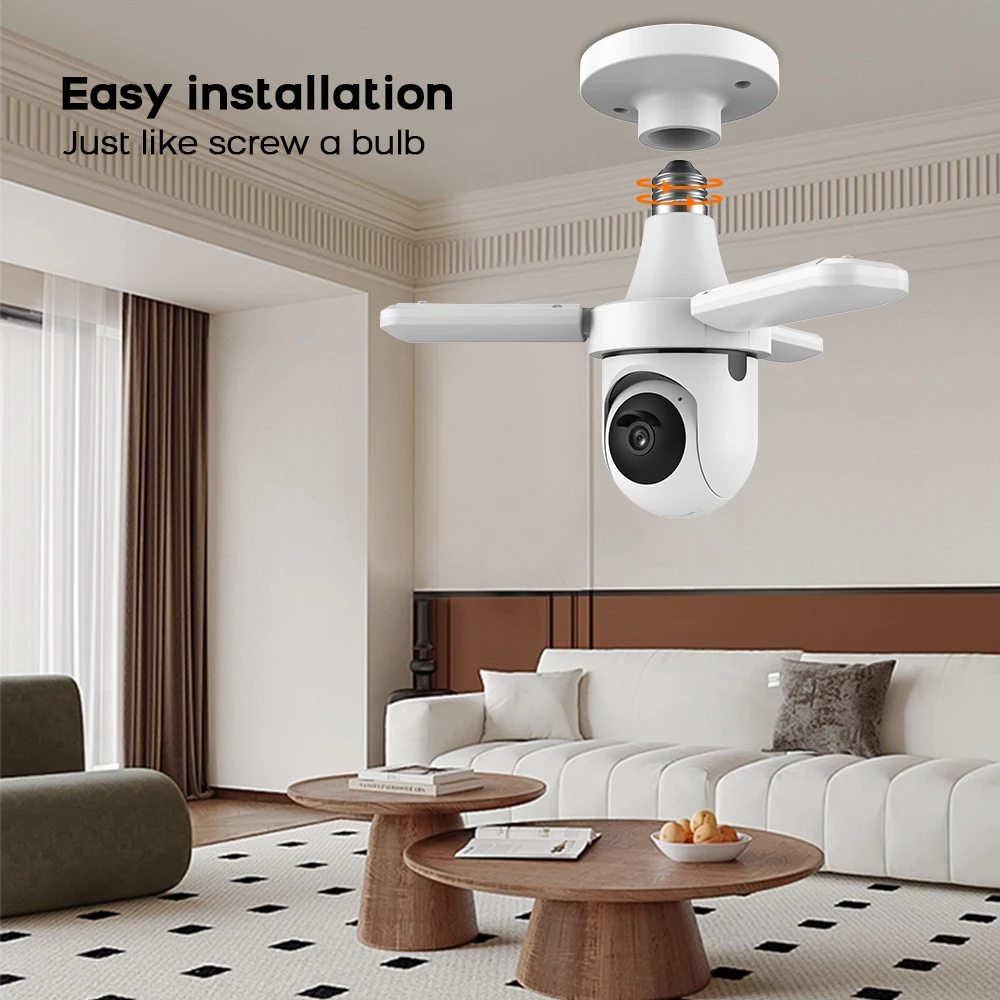HD PTZ WiFi Security Camera Bulb with Night Vision and Tracking