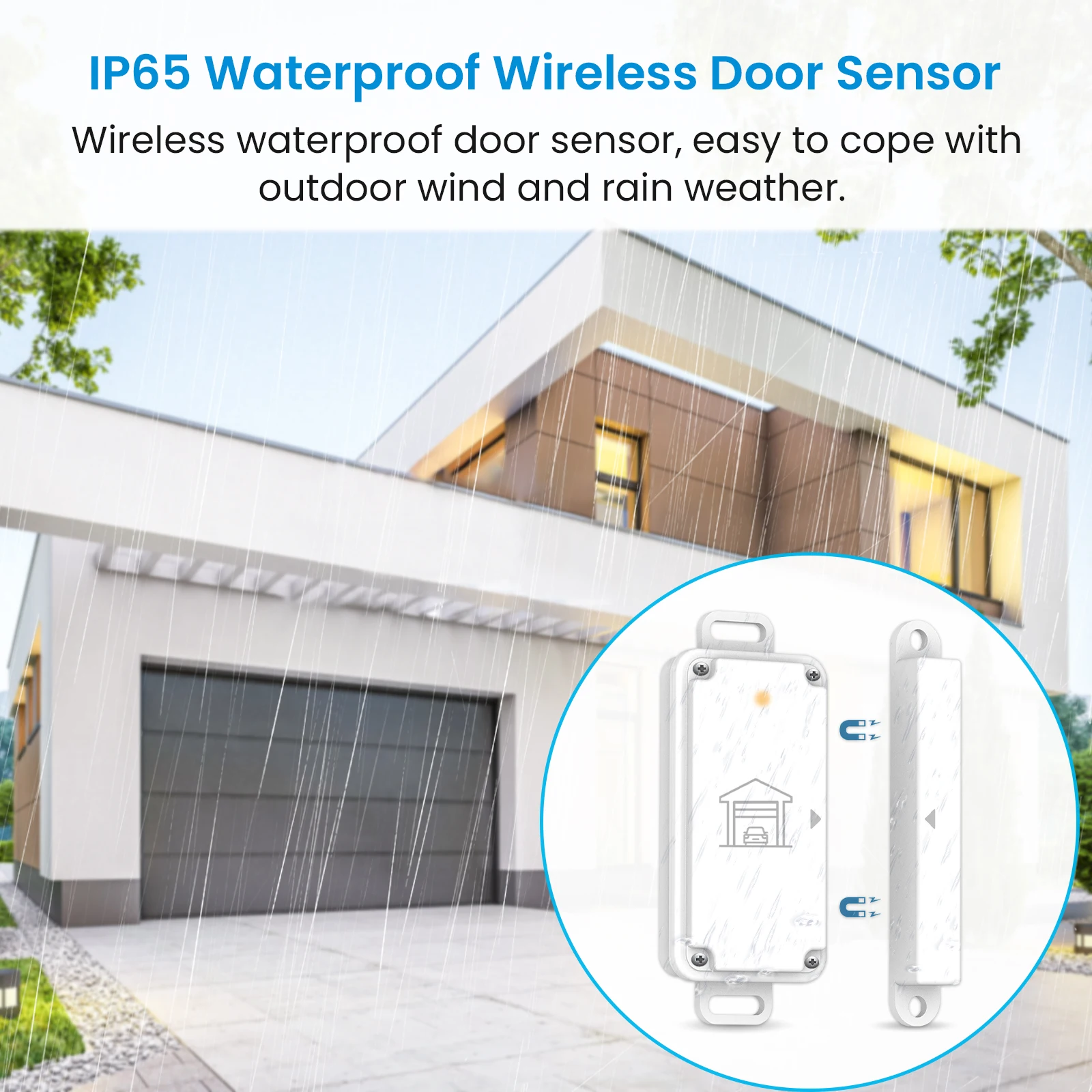 - Wireless waterproof door sensor: IP65 waterproof level, no wiring required, easy to cope with outdoor wind and rain weather.
