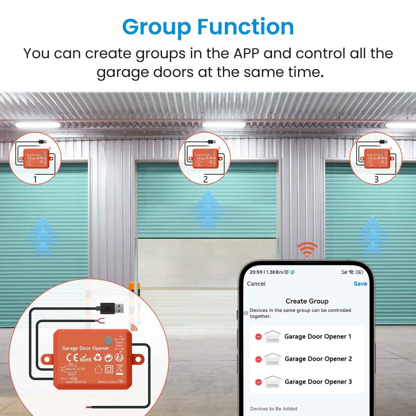 - Real-time Notification: No matter where you are, you will receive App notifications when the garage door is opened/closed.