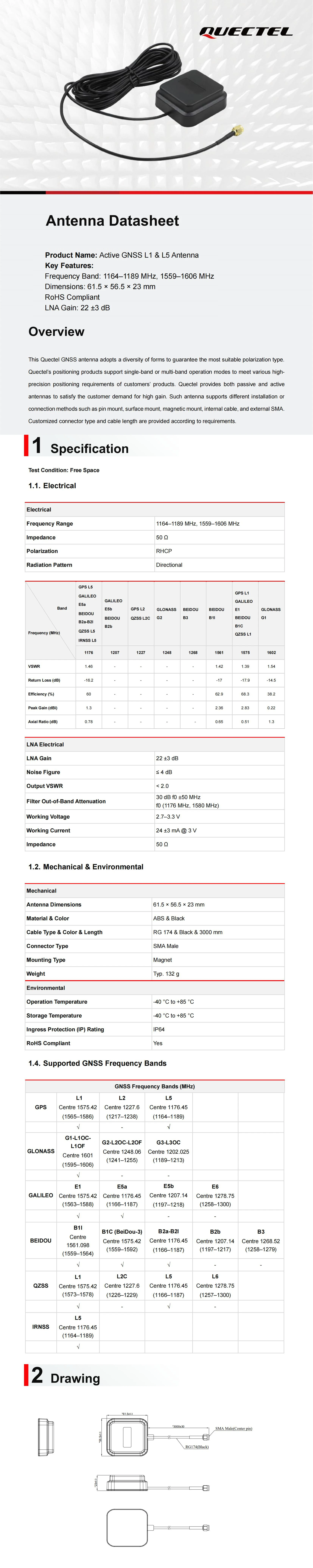Magnetic Mount GNSS Navigation Antenna with High Gain