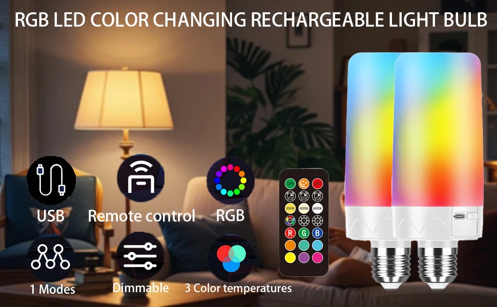 Remote Control and Smart Freedom: With the remote control, you can easily manage the lights. Asimple click lets you switch among 3 color temperatures - warm white, natural neutral white, andbright daylight. Moreover, double - clicking the remote allows you to switch the bulb's color, offeringmore flexible lighting control. There are also 9 beautiful RGB colors to meet your personalizedlighting needs in various scenarios. Meanwhile, the carefully configured 30/60/120 - minute timerfunction enables you to enjoy an intelligent and convenient lighting experience without the worry offorgetting to turn off the lights.