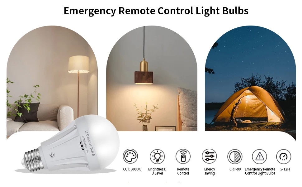 💡Good choice for indoor led light bulb / camping lights & lanterns, power outage lights, rechargeable light bulbs, remote control light bulbs, emergency light bulbs, battery lights with remote and flashlighting, well worked as the wireless lamps for 4 -12 hours after fully charged. Dimmable light bulbs with 3 levels brightness, 1️⃣Level,4-5hours at 100% brightness.2️⃣level,8-10hours at 50% brightness. 3️⃣level,10-12hours at 10% brightness. If used as a cordless night light bulb, The 3th brightness is recommended, Longer working hours.