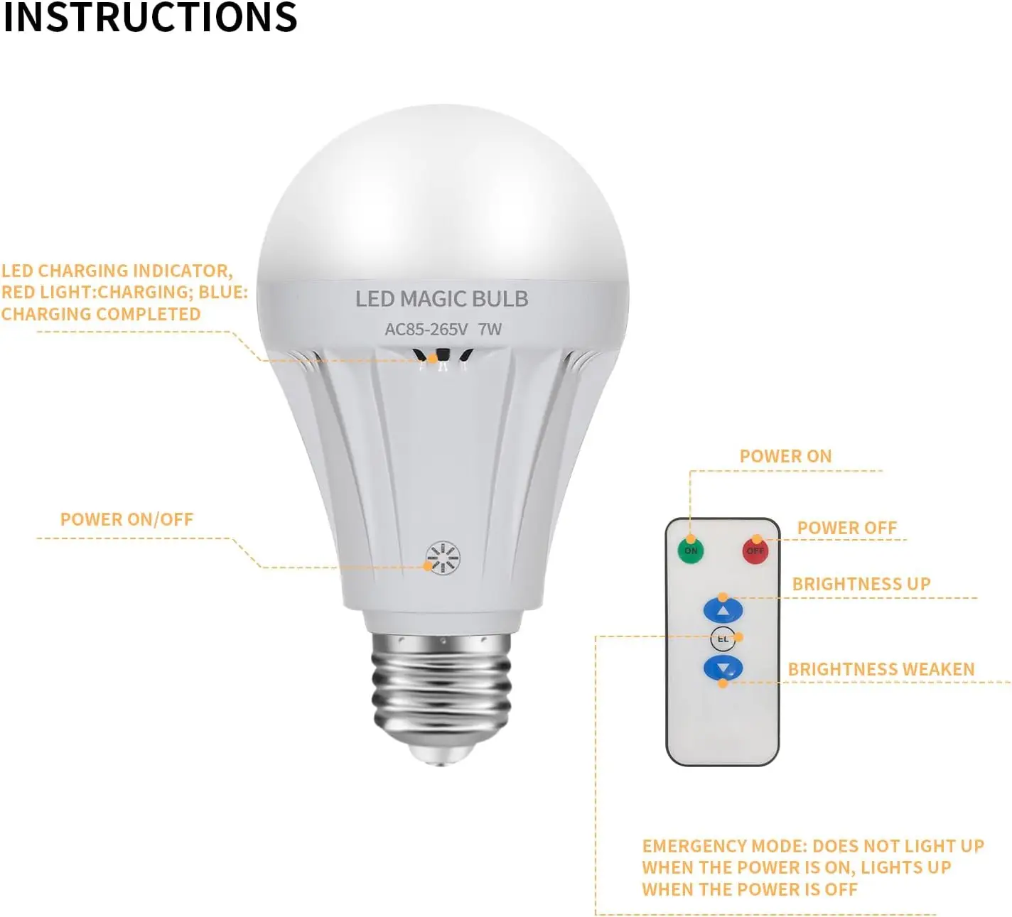 💡 LED magic bulb is the newly designed lighting product in the market, without a charging cable, simple and environmentally friendly, can directly use an E26 socket to charge battery-powered lights. It takes about 5️⃣ hours from no power to full. When the red indicator turns blue Color, Magic bulb is fully charged. Usually can be used as ordinary light bulbs, when the emergency comes, pull them down to turn into an emergency flashlight in 1 second.