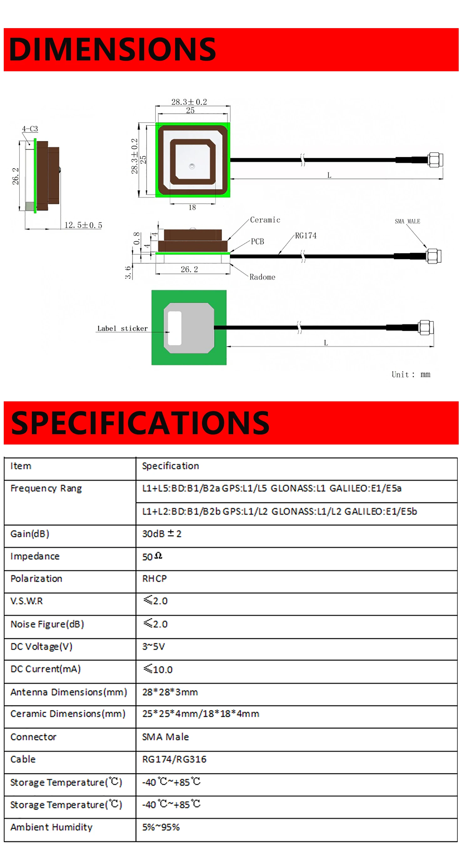 Ceramic GNSS Antenna for High Precision RTK Positioning