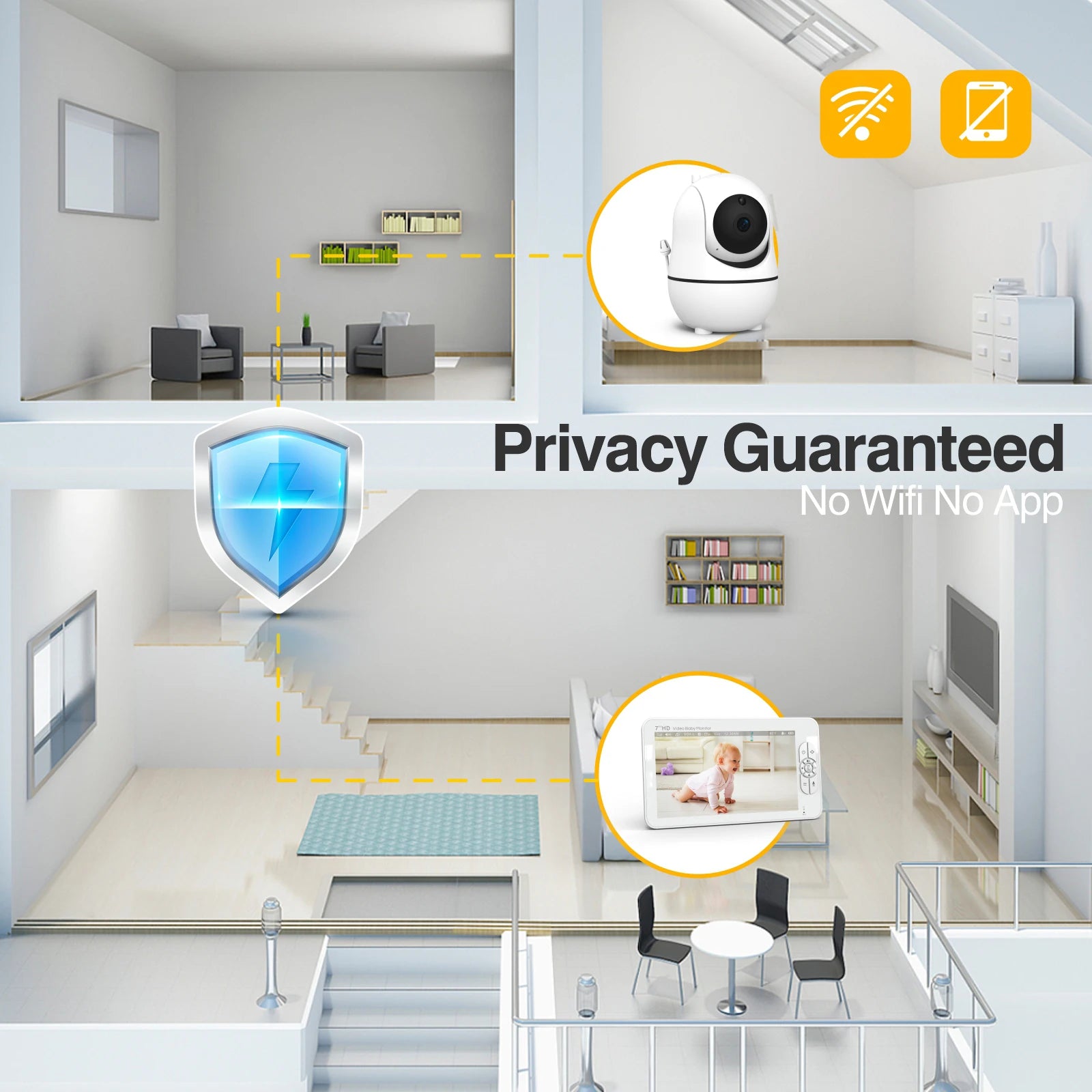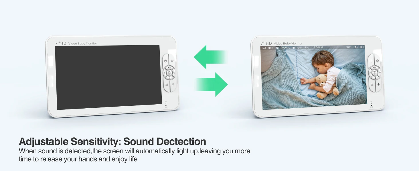 Night vision / Sound alert / Room temperature sensor / 8 Lullabies / 2-way audio / Alarm clock |