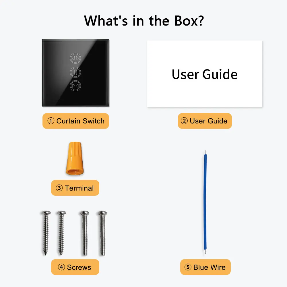 User Manual with 8 pages detailed instruction for how to connect curtain switch, how to connect App.