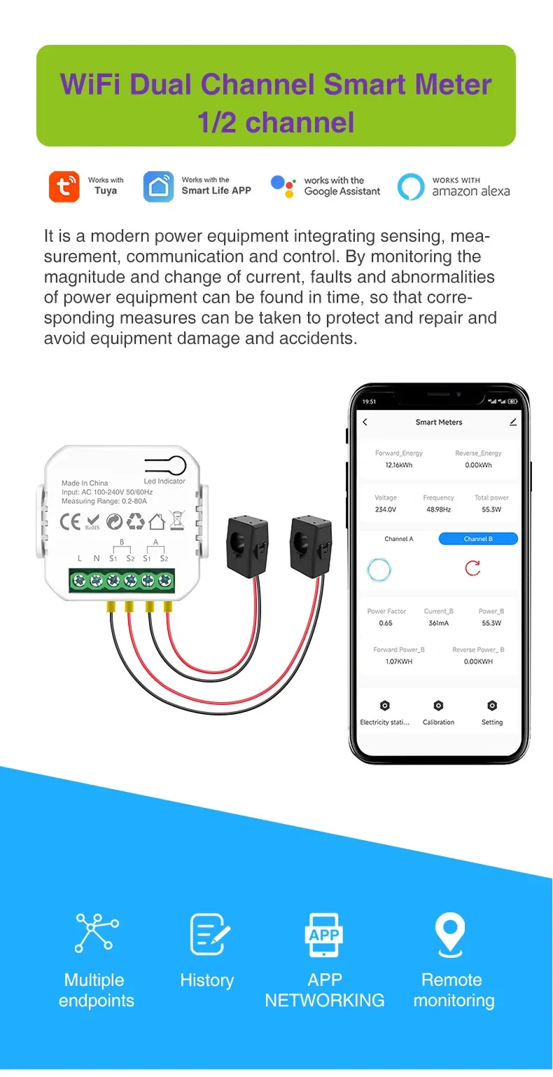 Smart WiFi Energy Meter with Solar Import Export Monitoring
