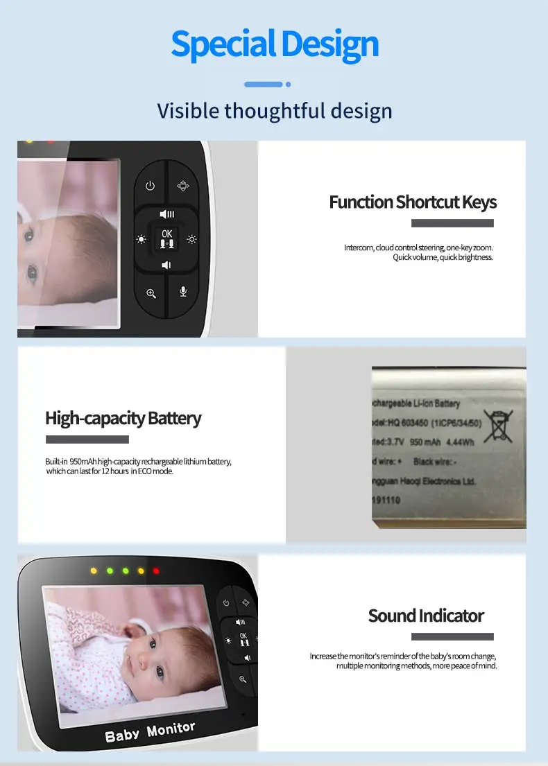 The baby can be dynamically monitored at all times and the baby monitor will become your little assistant to take care of baby.